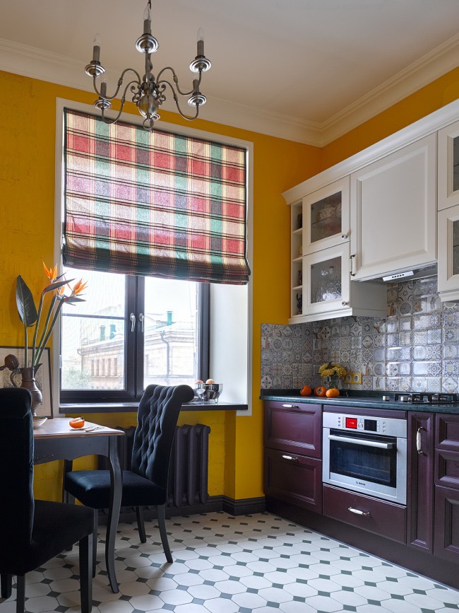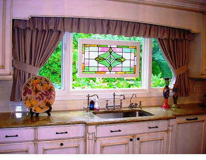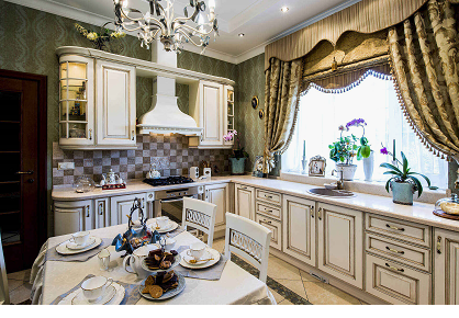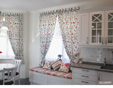 Добавят кухне роскоши. Но существует один нюанс: чем крупнее рисунок, тем больше должно быть окно кухни.