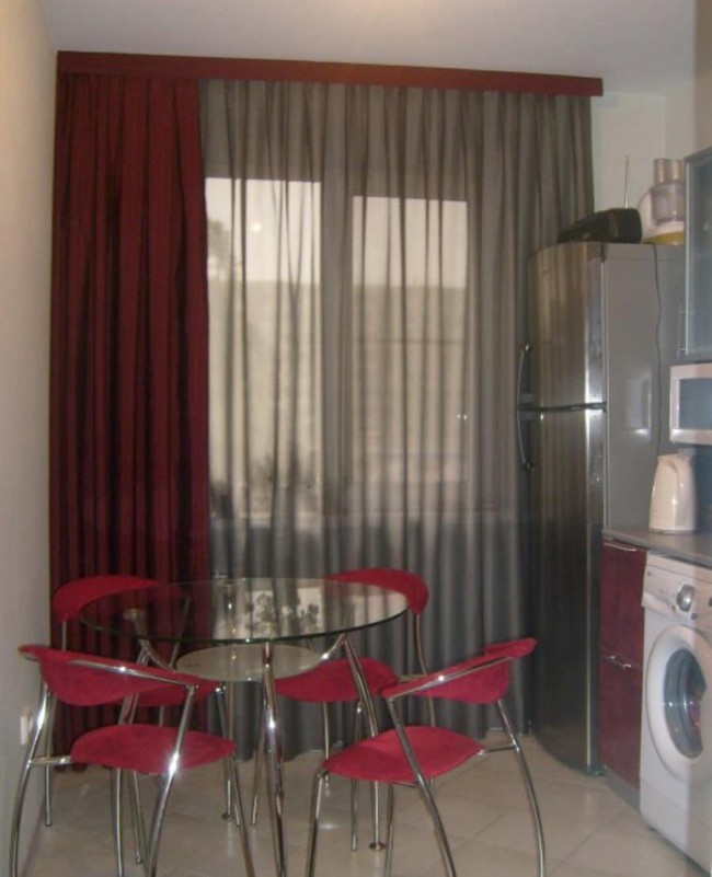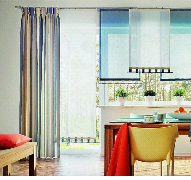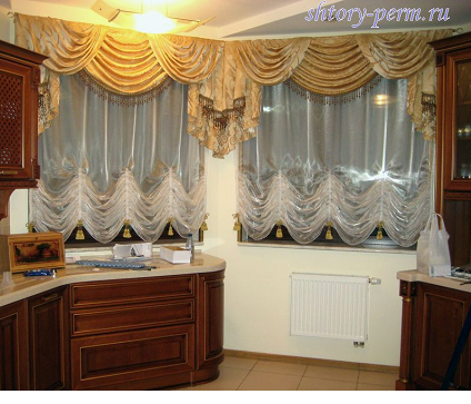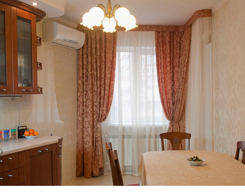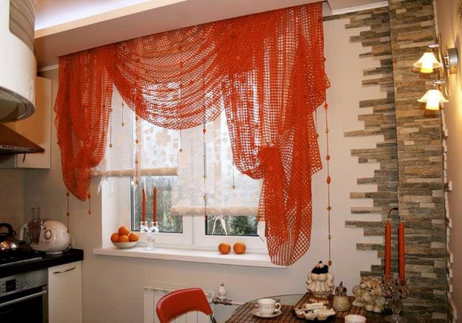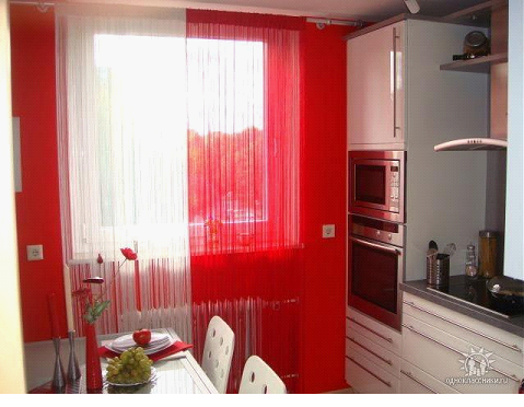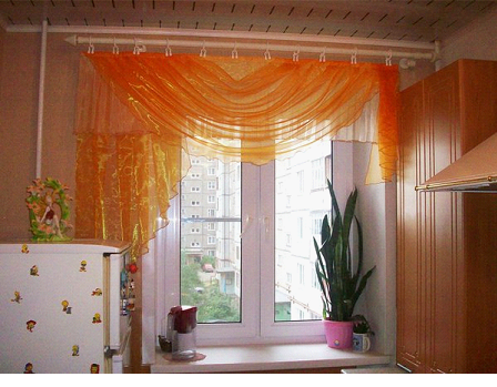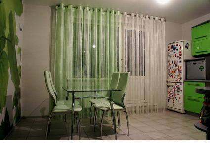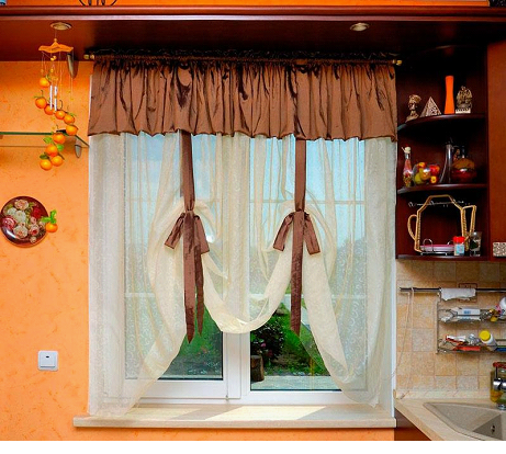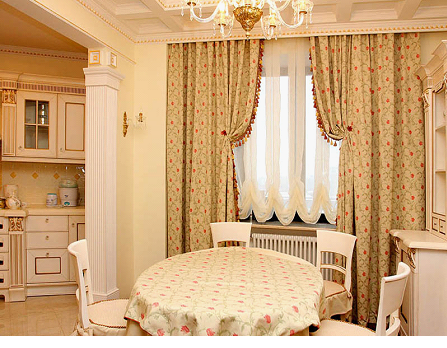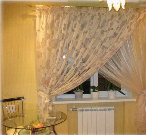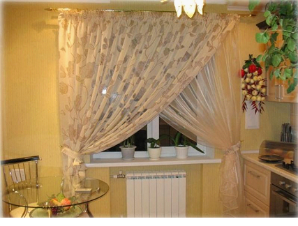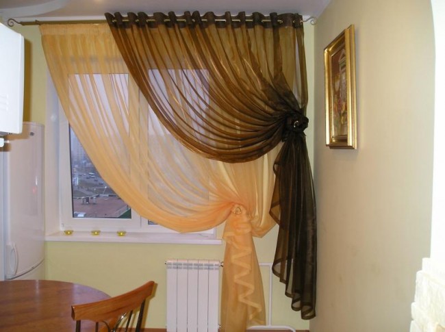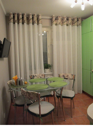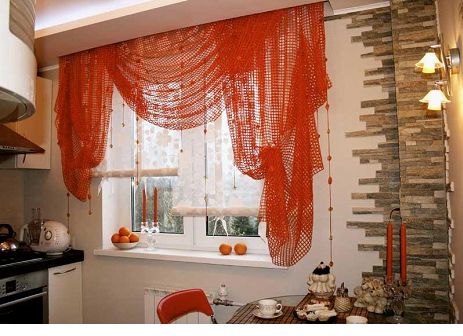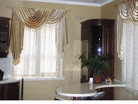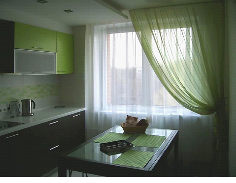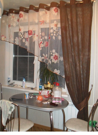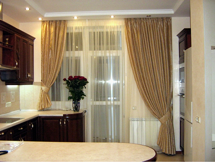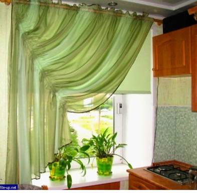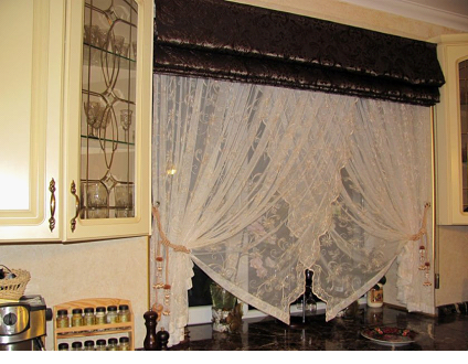 - не быть слишком прозрачными, чтобы ограждать помещение от нежелательных взглядов прохожих, если, конечно, не использовать рулонные шторы на кухне в комбинации с плотными портьерами;