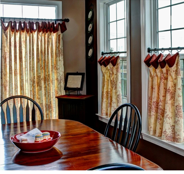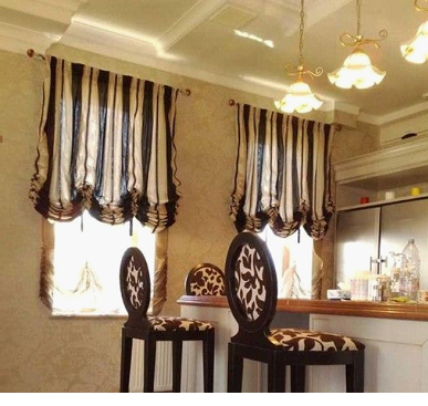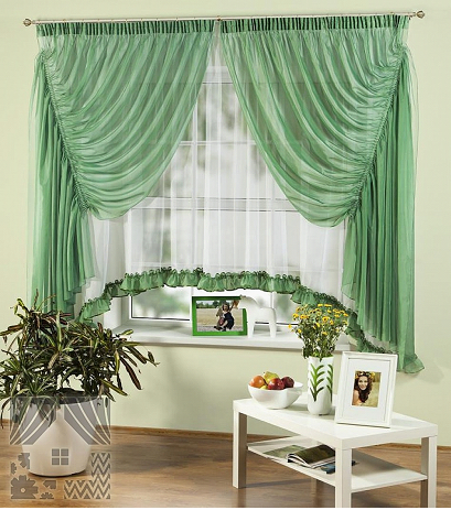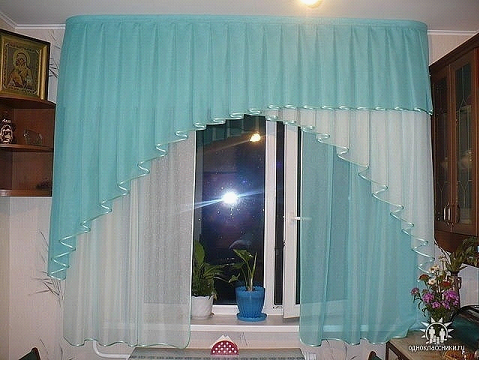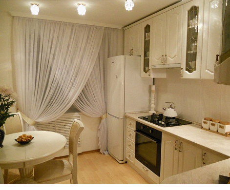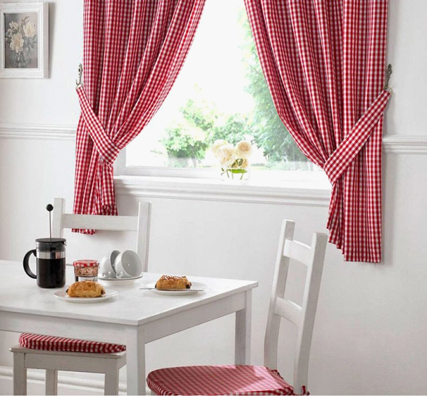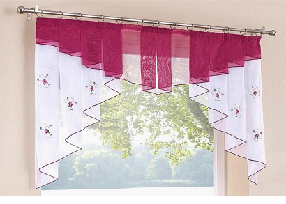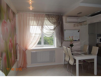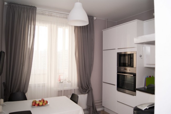 Короткий крой идеален для миниатюрных комнат и для кухонь, в которых гарнитур частично расположен вдоль окна. Такое решение добавляет уют интерьеру, не преграждая поток света.