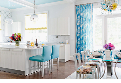 Независимо от того, что является холодным оттенком располагает к отдыху и спокойствию. Способны придать интерьеру кухни легкую и беззаботную атмосферы.