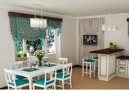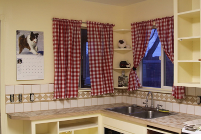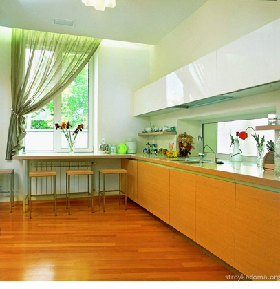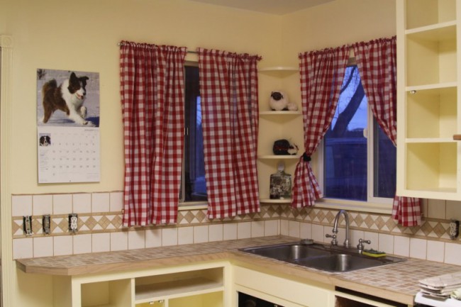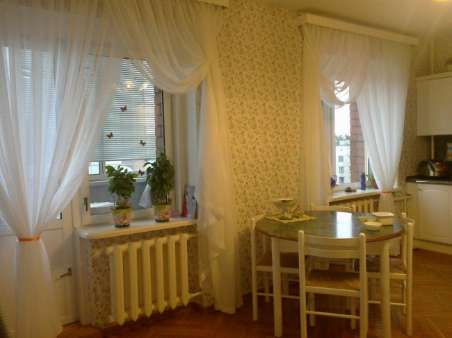 Короткие занавески на просторной кухни