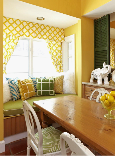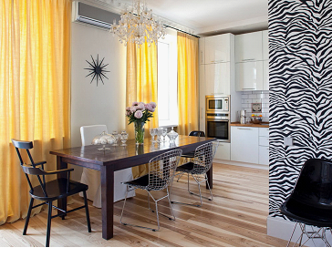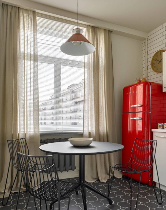 Если вам по душе контрастные элементы – смело экспериментируйте! Но помните, что даже акцентные детали лучше подчеркнуть цветовыми компаньонами в декоре. Это может быть ваза, посуда в тон яркой материи, часы или, к примеру, скатерть.