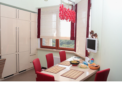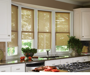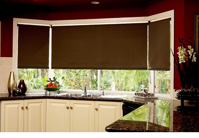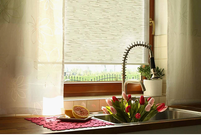 - на кухне с окнами, выходящими на южную сторону предпочтительно использовать рольшторы, способные препятствовать излишнему проникновению солнечного света и тепла;