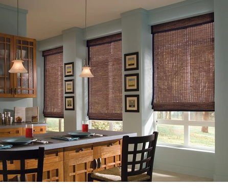 В современном мире, устав от городской суеты, хочется, придя домой, окунуться в атмосферу тропического острова. Рулонные шторы из джута или бамбука станут идеальным дополнением интерьера кухни в эко-стиле.