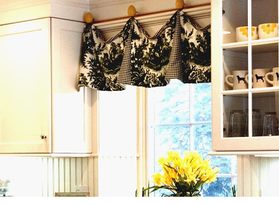 На фото ламбрекен с рисунком, яркий акцент в оформлении оконного проема.