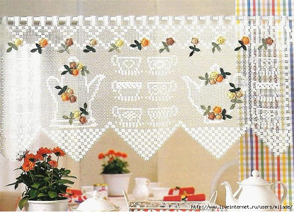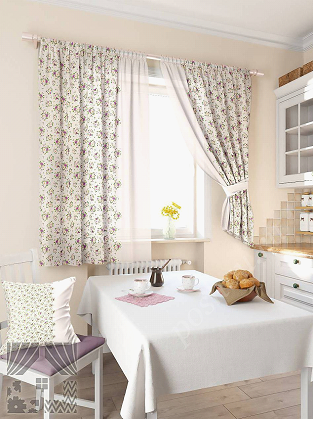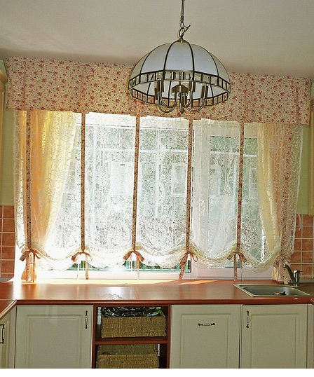 На фото рулонная штора и тюль для оформления кухни в стиле прованс.