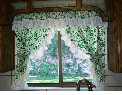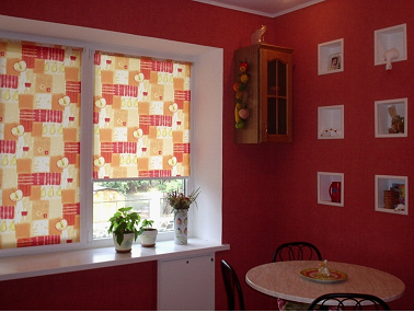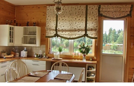 Кантри-стиль не приемлет ярких вызывающих красок. Рулонные шторы в этом стиле добавят кухне уюта и домашней обстановки. Полотна штор подбираются из натуральных тканей (льна или хлопка).