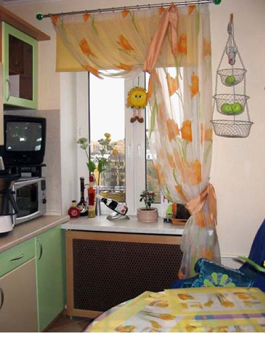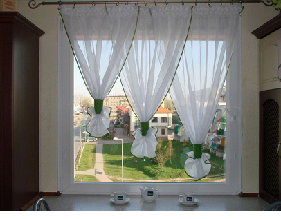 Если вблизи окна расположена газовая плита, в таком случае необходимо всегда помнить о технике безопасности – лучше выбрать натуральную ткань, которая не загорится моментально при случайном воздействии огня.