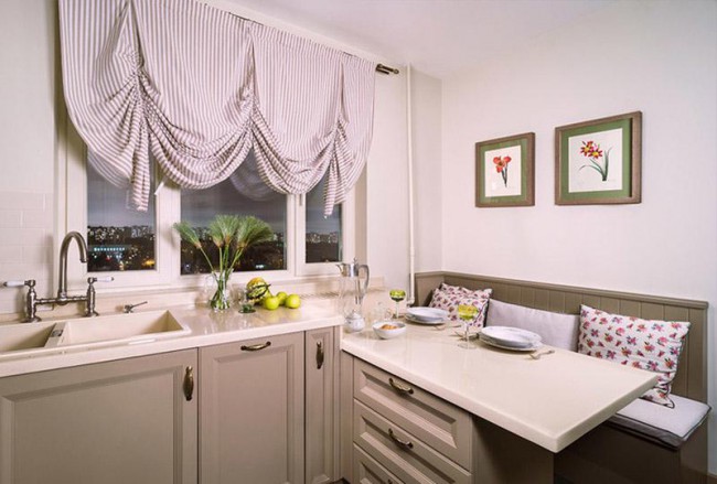 Незабудьте посмотреть варианты римских штор для кухни.