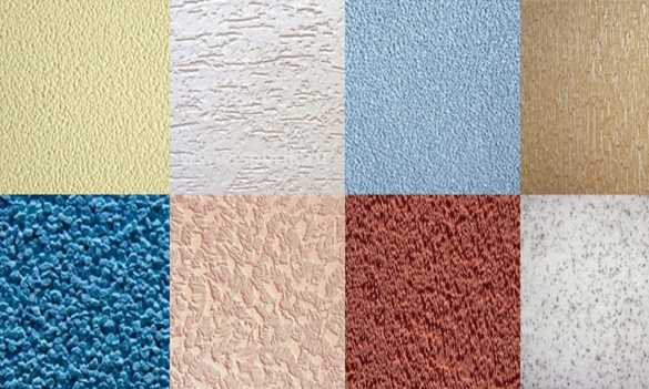 Как уже было сказано, в состав фактурной штукатурки обязательно входит связующее вещество. В зависимости от вида связующего компонента выделяют следующие разновидности штукатурки: