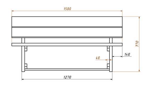 Конструкция и размеры скамейки обусловлены некоторыми факторами. Длина сиденья – 1500 мм. Такой размер позволяет удобно разместиться на ней втроем. Спинка наклонена под углом около 18 градусов, предоставляет возможность сидящему человеку занять комфортное положение. Расстояния между досками, составляющими спинку и сиденье, позволяют не задерживаться осадкам на поверхности, что, в свою очередь, продлит целостность древесины и изделия.