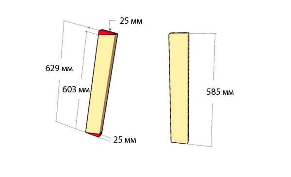 - отметьте место крепления сидения и срежьте верхнюю доску под углом в двадцать градусов, срезы на обеих заготовках должны быть одинаковыми;