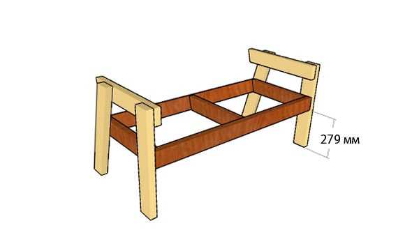 - используя брус, соедините передние и задние ножки скамейки;