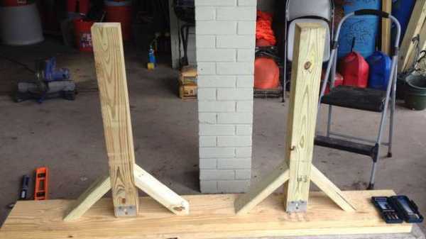 Возьмите две части 4×4 длина19 ¾ «(50 см) и закрепите угловыми скобами. Закрепите две фигурные скобки как на одной стороне, так и заподлицо с противоположными концами.
