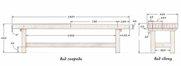 Как сделать скамейку со спинкой: чертежи, размеры, фото