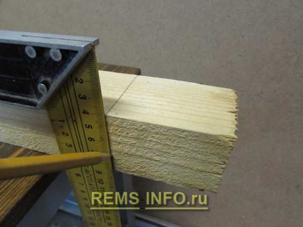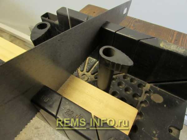 Остроганные бруски размечают и отпиливают по длине, выбирая для концов заготовок участки без крупных сучков. Срезы выполняют строго под прямым углом, для чего используют стусло или торцовочную пилу.