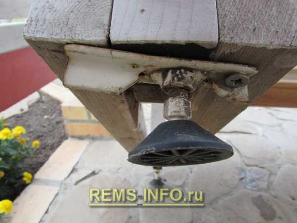 С целью предотвращения гниения деревянную скамейку в беседке следует приподнять над поверхностью, используя регулируемые ножки. Детали несложно найти в строительном гипермаркете или подобрать от старых стеллажей.