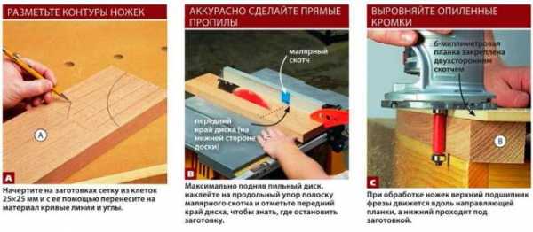 Две боковые царги прямые, как и внутренняя опорная, поэтому вырезать их будет несложно. Точно следуйте размерам, чтобы конструкция боковины получилась красивой и ровной.