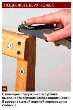 - Подобным образом закрепляют заднюю стойку, укосину и наклонную рейку спинки скаьи.