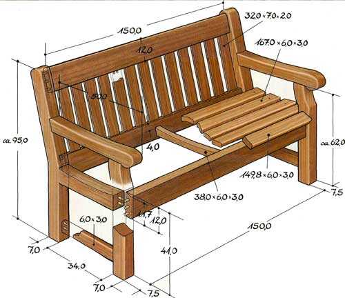Как своими руками сделать скамейку со спинкой из дерева: чертежи
