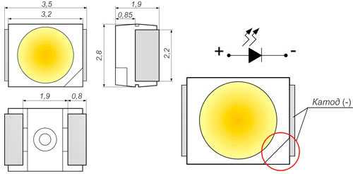 Цифры после SMD обозначают размер светодиода в миллиметрах – его длина и ширина.