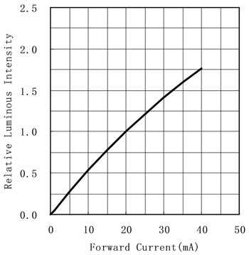 Из графика видно, что световой поток выражен в условных единицах, где единице интенсивности (1,0) соответствует значение, измеренное при токе 20 мА. Увеличение тока через p-n-переход до 30 мА даст прирост яркости на 40%. Однако, срок службы светодиода снизится в несколько раз, из-за длительной работы на максимально допустимых параметрах.