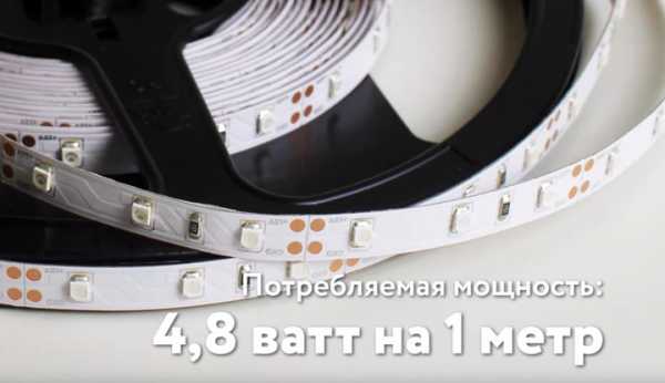 Тут все просто, чем больше смонтировано на ленте светодиодов и чем они больше по размеру, тем больше ее мощность. Самая маломощная – это SMD 3528 на 60 диодов. Ее мощность всего 4,8Вт.