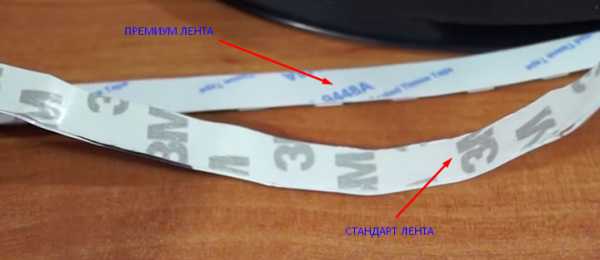 У всех лент сзади подложки есть клейкое основание. У премиум это Scotch 3М. Причем там должна быть не только одна надпись 3М, но еще и маркировка в виде отдельных цифр.