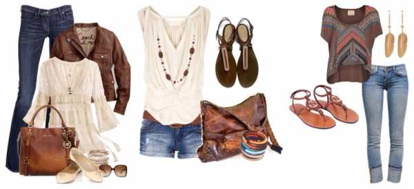 Сочетание рубашек из натуральных тканей и трикотажных изделий бежево-коричневой цветовой гаммы с синими джинсам располагает к прогулкам и активному отдыху. Подбирая к коричневому оттенки синего, используйте глубокие насыщенные цвета для плотных тканей, а нежно-голубые и бирюзовые – для невесомых и легких.