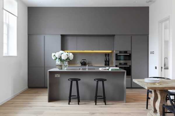 Кухня, в оформлении которой преобладают серые оттенки, позволяет полностью сосредоточиться на процессе готовки. Во многом она напоминает производственное помещение высококлассных ресторанов, где вся мебель и столешницы непременно выполнены из стали. Но даже если на домашней кухне будет деревянная мебель и столешницы из литого камня, серый цвет сделает ее стильной и практичной.