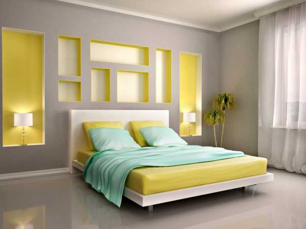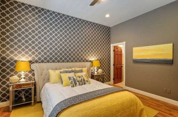 Потрясающий серо-желтый интерьер спальной, которая вдохновит еще на большие эксперименты и точно понравится.