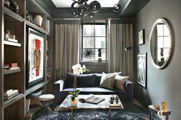 В серой комнате должны быть большие окна, которые желательно оставлять незашторенными, по крайней мере, днем. В остальное время восполнять недостаток солнца могут многочисленные точечные светильники, крупные припотолочные люстры, настенные бра.