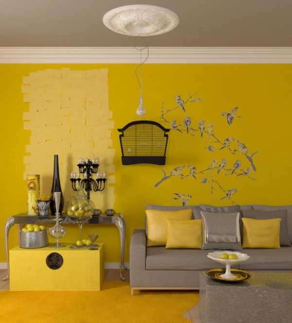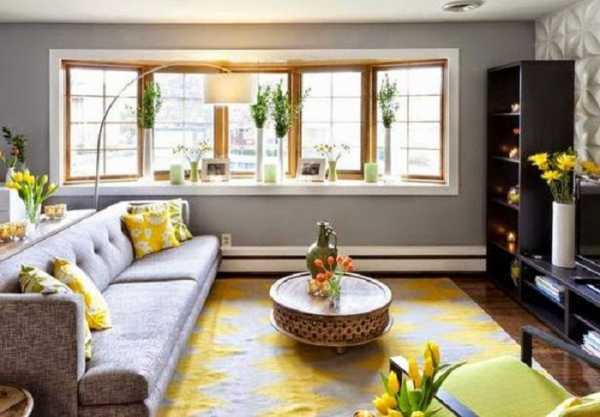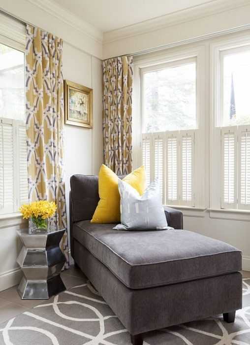 Профессионалы советуют брать оттенки одинаковой интенсивности – ярко-желтый и насыщенный серый либо бледно-желтый и такой же светлый серый. Бывает, что светло-серый становится фоном для кричащего желтого, а темно-серый разбавляют бледно-желтыми аксессуарами, но с точки зрения «академического» дизайна это ошибочно.