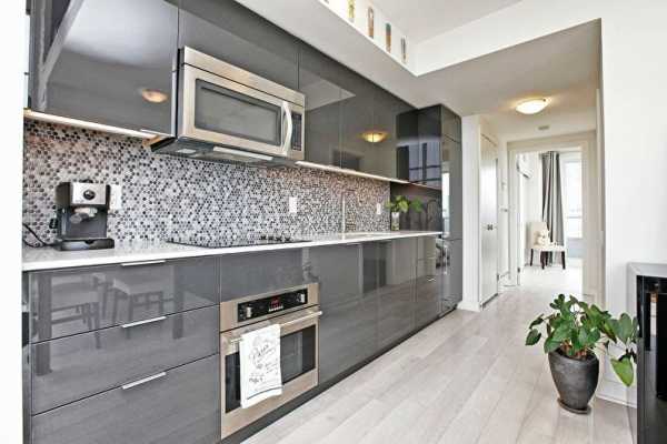 Красивое оформление кухни в желто-серых тонах, что выглядит очень достойно и прилично.