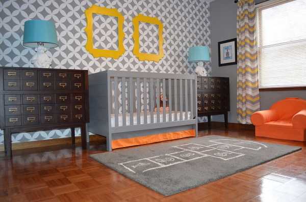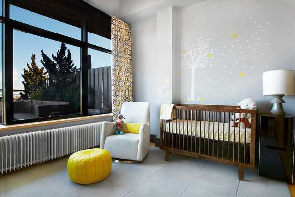 Если вы не заинтересованы в жёлтом как в основном цвете, это не проблема. Существует множество других способов добавления этого цвета в дизайн комнаты для вашего малыша. Один из них – обратить внимание на серый как на доминирующий в палитре. Его же «напарник» используется в качестве поддержки.
