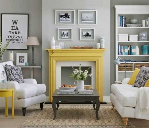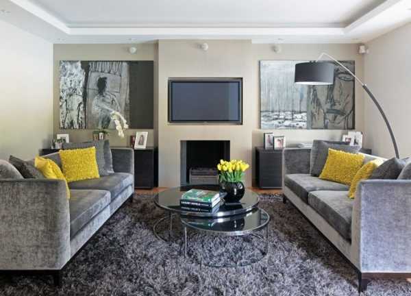 Прекрасный вариант создать уютную обстановку в гостиной благодаря серо-желтой цветовой гамме, что впечатлит однозначно.