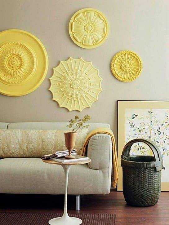- Масштаб применения. Приоритет в интерьере желтого цвета создаст жизнеутверждающую и солнечную атмосферу, приоритет серого – сдержанность.