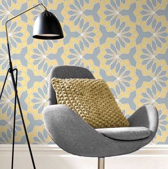 Например, в кухне возможен такой вариант. Бежевый пол, белые стены, желтые рабочие поверхности, кухонная мебель глубоких серых оттенков. В столовой зоне лучше наклеить белые обои с серым орнаментом, в тон мебели. А чтобы зона визуально не воспринималась мрачно и обособленно, на стене повесьте ярко-желтый светильник.