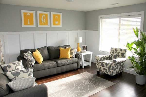 - серый + желтый наполняют комнату теплом, поднимают настроение
