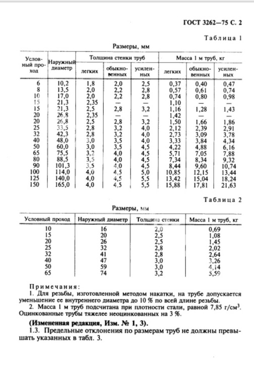 Настоящий стандарт ГОСТа 3262-75 применяемые для водопроводов и газопроводов, систем отопления, а также для деталей водопроводных и газопроводных конструкций.