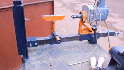 Принцип изготовления задней бабки такой же, как и передней. В качестве пиноли мастер использует ротор с патроном от дрели.