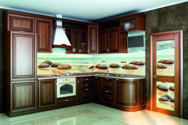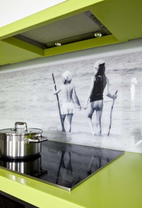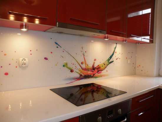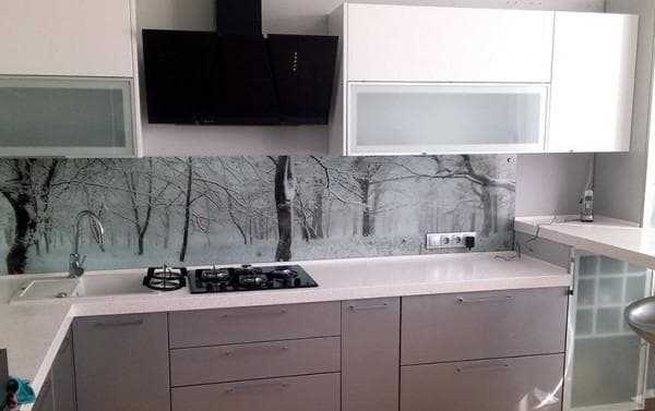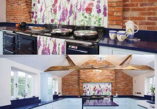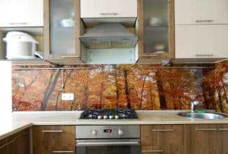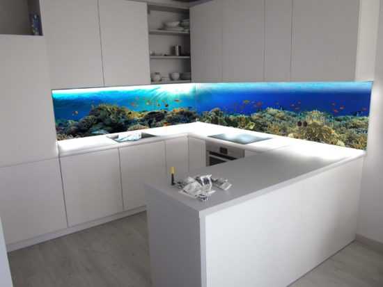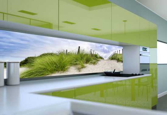 Стеклянный фартук с фотопечатью в интерьере