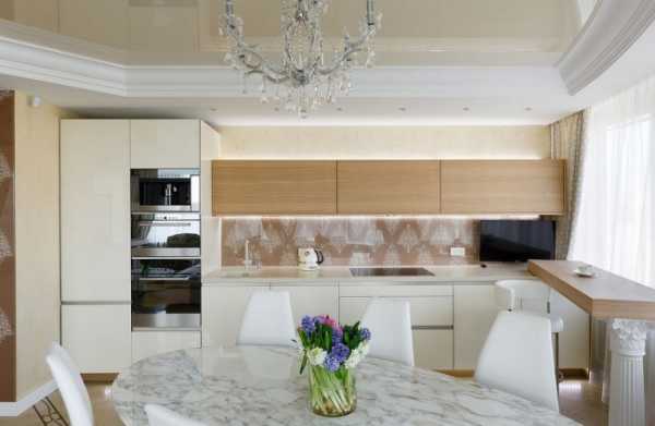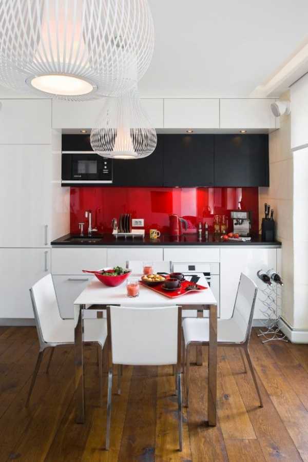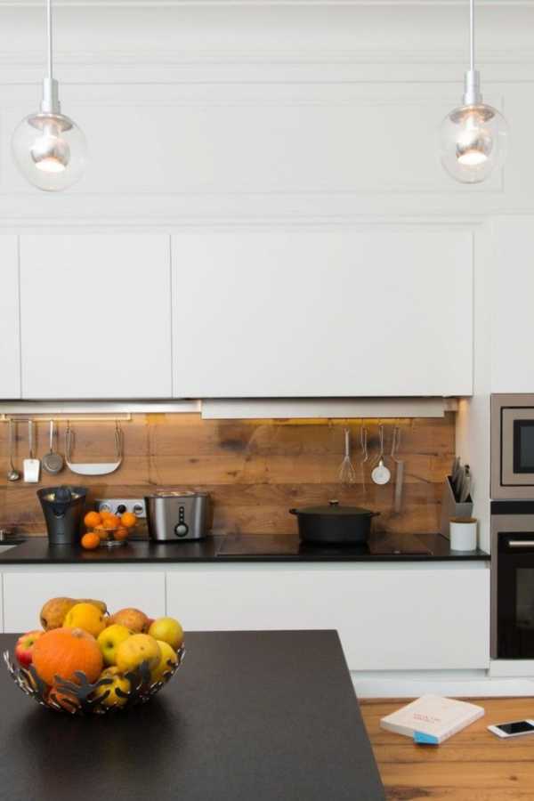 На фото — кухня со скинали с подсветкой.