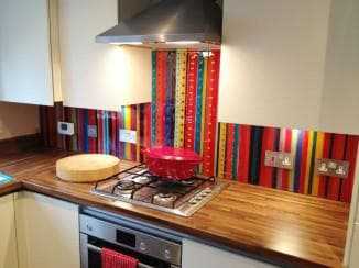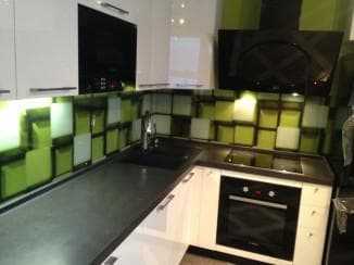 - стеклянные кухонные фартуки изготавливаются в подавляющем большинстве случаев только под заказ, готовым купить такой фартук, который бы учитывал все особенности вашей кухни и ваши пожелания, нельзя.