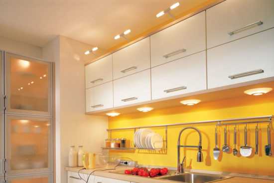 Локальное освещение рабочей зоны повышает ее функциональность. Зачастую центральной люстры совершенно недостаточно. Светильники, вмонтированные непосредственно над рабочей столешницей, обеспечивают куда лучший уровень освещения (отзывы это подтверждают).