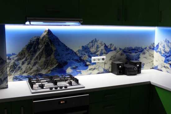 Стеклянный фартук для кухни: фото
