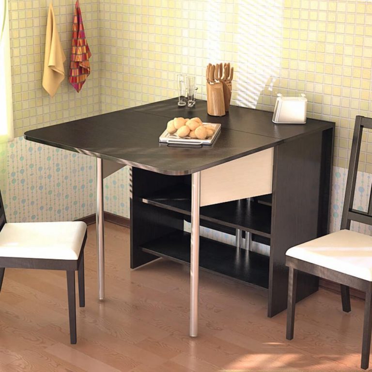 Лучше всего для маленькой кухни приобрести стол с откидной столешницей или раздвижной стол-трансформер.