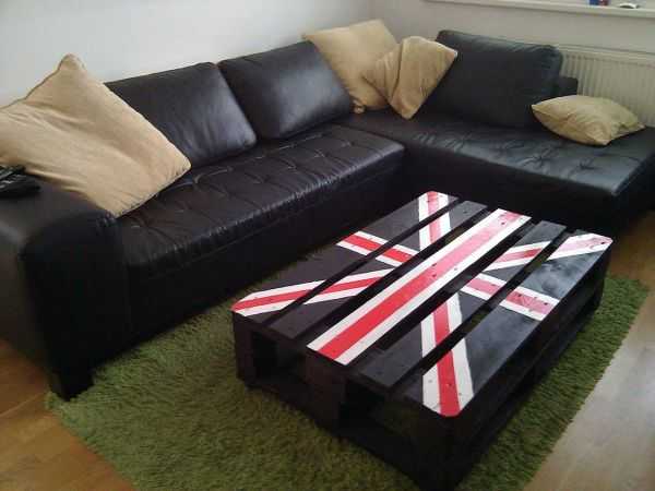 Имея в наличии нескольких поддонов, достаточно просто сделать более продвинутый журнальный стол.