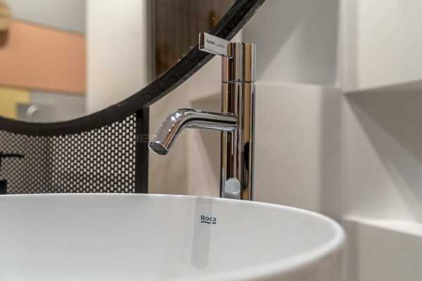 «Раковина, встроенная в такую столешницу, подойдет в ванную комнату любого формата»