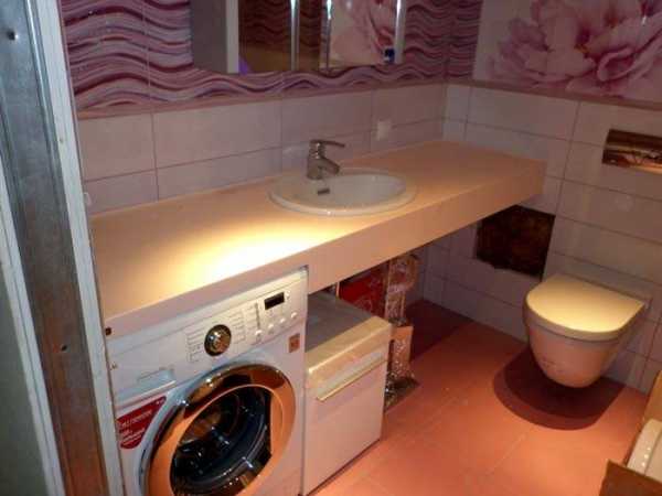 Помимо кувшинки, есть также такая разновидность стиральной машины как раковина со столешницей под стиральную машину. Ее отличительная особенность в асимметричности, то есть, справа или слева от чаши есть специальная горизонтальная поверхность, под которую отведено место для установки стиральной машины.